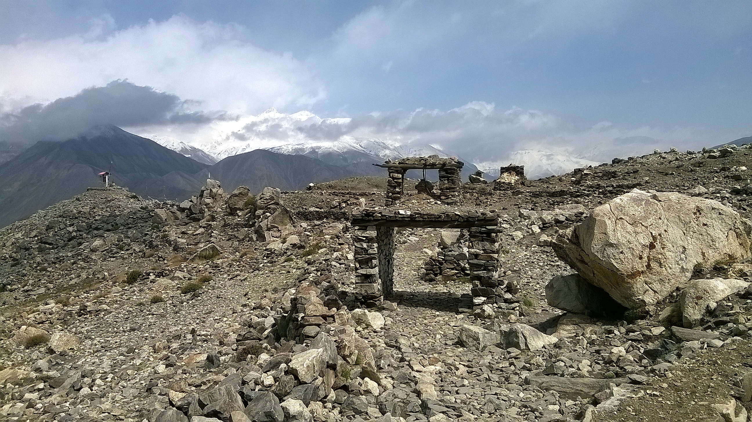 The caretaker was there at that time and he agreed to make me parathas for breakfast. As he started cooking we had a conversation. His name was Sonam and he was coming from Ladak, Kashmir. Sonam told me to go check out the Buddhist temple on top of the hill and take a walk to the Monastery down the road as I didn’t know much about Nako. He advised me to hurry up because I should get back there by 12 p.m. in order to get the bus to Kaza. The bus could come any time afternoon. The weather was all cloudy in the morning and even snow started to fall but only for a very short time. As soon as I finished breakfast I started trekking towards the temple as Sonam had suggested. The narrow pebbled pavement to the temple on top disappeared a little while after I started climbing up. I looked up, the temple was made up of rocks and I guessed it wouldn’t take more than an hour to reach there. On the way I saw the Nako Lake on the right side, it was nothing to boast of, probably a little larger than a pond. The trail completely disappeared after a while, so I had to stop at many points to find a way to the top. While climbing up I saw a giant prayer wheel on the edge of the mountain and made a quick detour towards it. The view from there was spectacular. The sky was getting clearer after the morning snowfall. All the reddish mountains that I saw the previous day had put on the white cap of snow by then! The white clouds were flying through the gap of the mountains on top of Spiti. I turned the prayer wheel a few times and listened to the sound of the ring echoing across the valley. I sat there for at least half an hour gazing at the flying clouds. In that mesmerizing land, you could be alone but never lonely. I think sometimes we feel more human when we leave all the civilization far behind and come closer to nature.