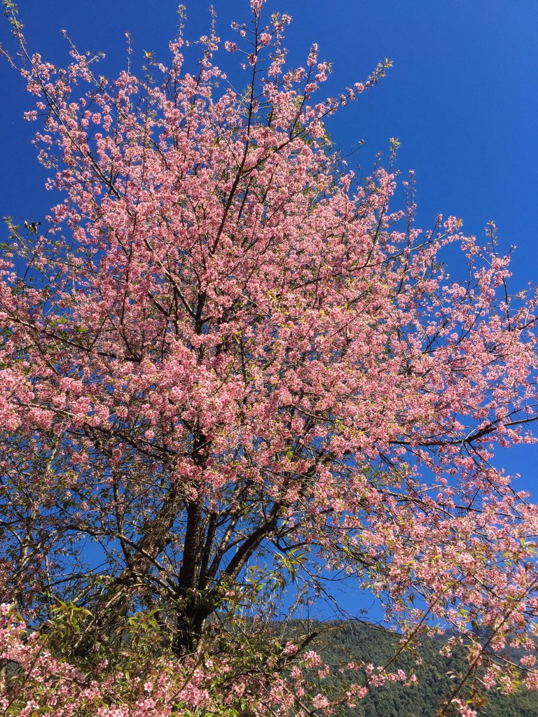 “You will enjoy the journey”  There is enough of sarcasm in that European lady’s voice who just passed us by. It didn’t take long to realize what she meant, it’s the steps.. The untarred road has now given way to steps; countless, endless number of steps. Porters hired by other tourists are not climbing but running through them or is it just that I’m hallucinating a bit after the tiring climb? Every pound that we carry now comes adds to our luggage making each step harder and harder. Every corner that we take I hope this could be the end. But no, it’s still going on. The path to the heaven is filled with steps – literally! This has to end at some point for sure… All the breaks that we take are eating up the time so much, but we have no choice. At least we could make it useful for acknowledging and drinking in the beauty of this valley, flowered beautifully thanks to the autumn season. The pink flowered unnamed tree on the way has set a different vibrancy to the place altogether.
