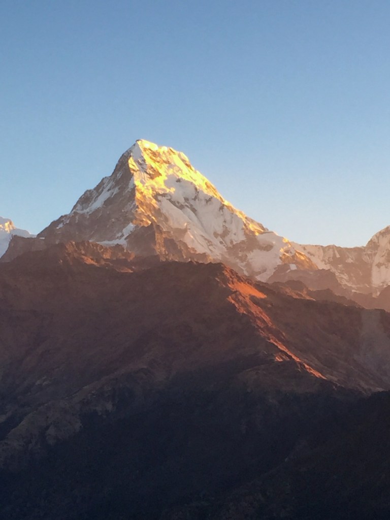 The rift is not going to help us revert back whatever happened, so let’s take some well deserved rest now. The last rays of the day are hitting the Annapurna south. Soon the sky gets filled with countless stars as the night also gets colder . The ice cone spear of Machhapuchhre is glistening as the moon joins the party later.