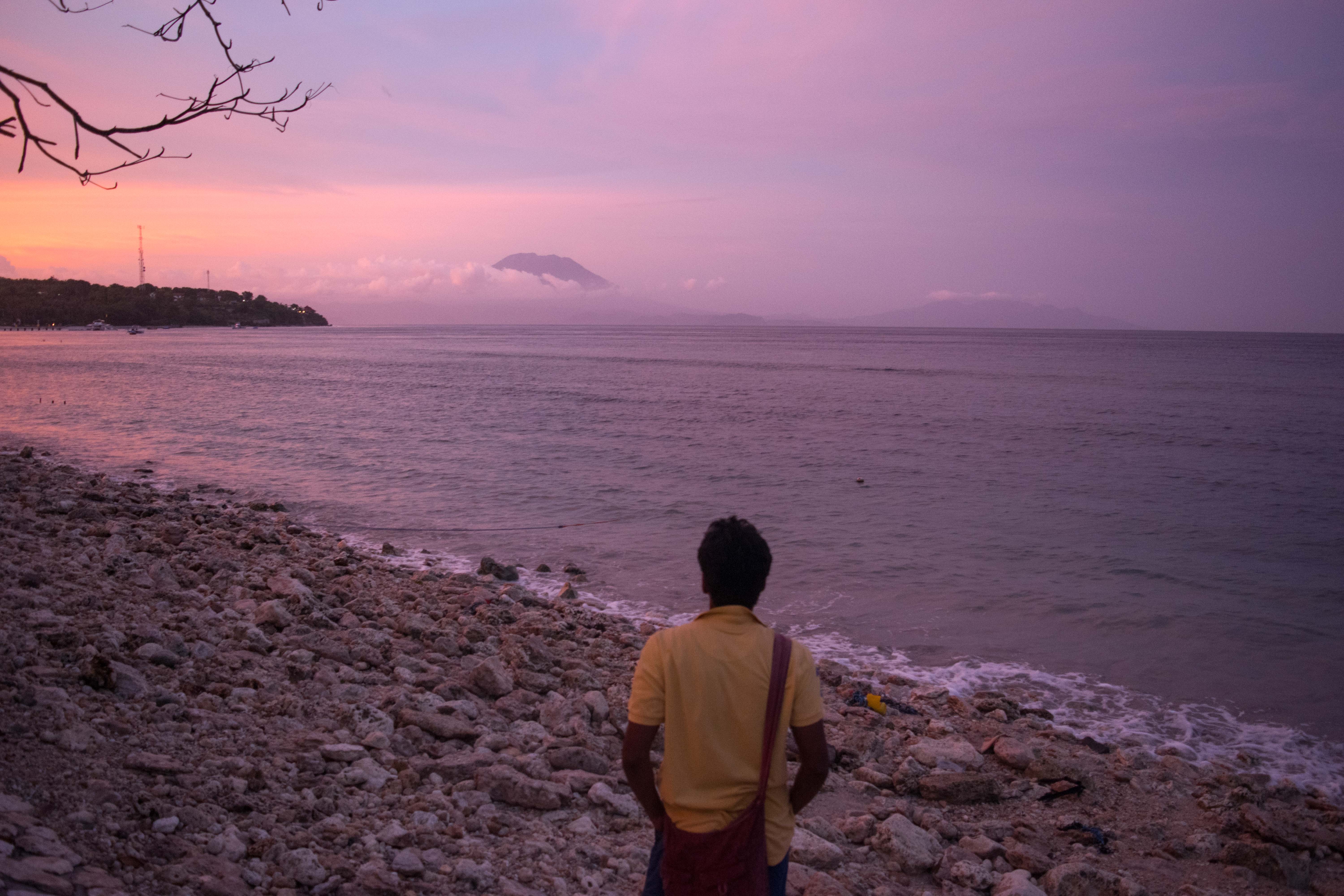 Watch nature paints the color of the sky as the sun goes down, with giant Mount Agung in the background.