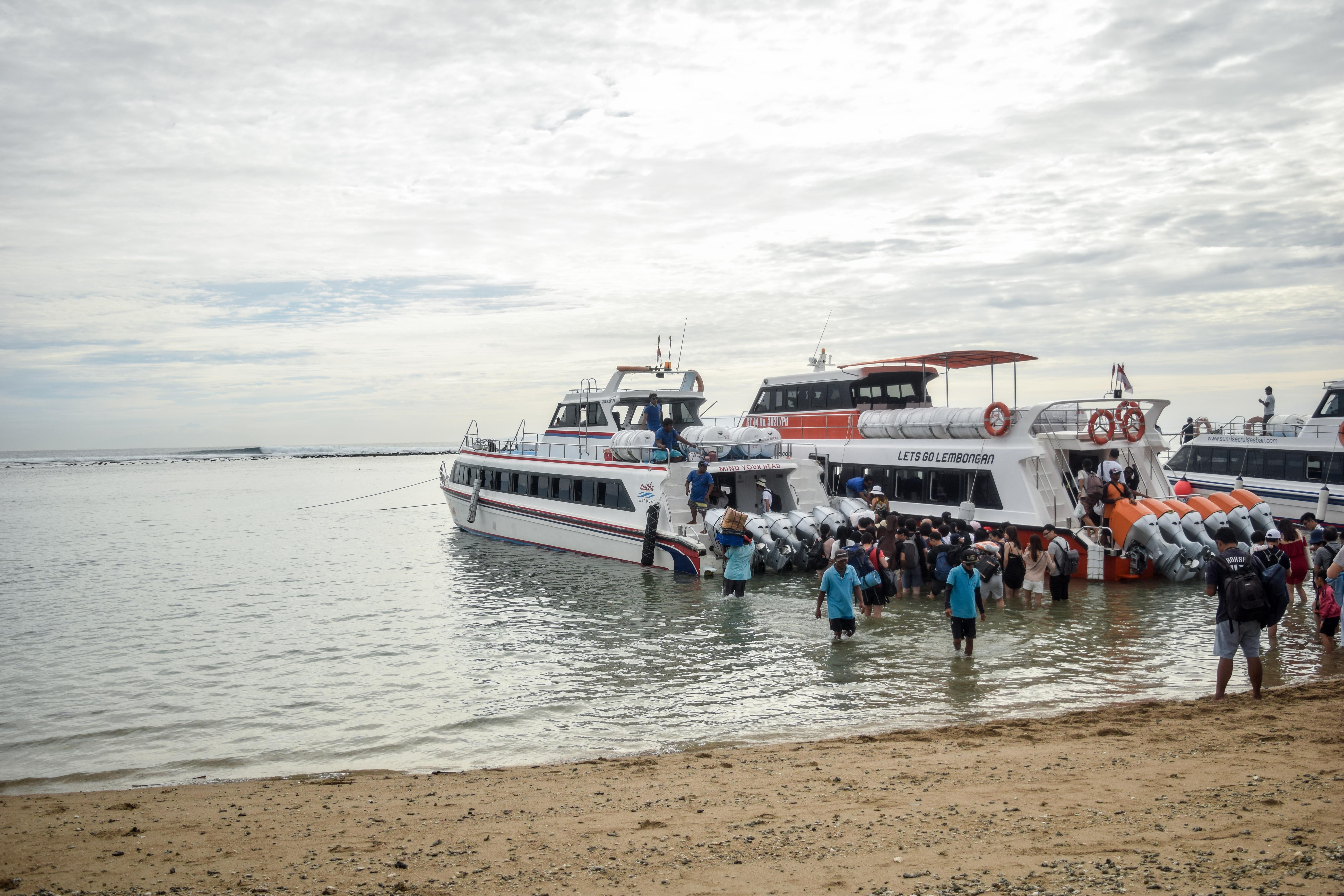Speedboats operated by the private operators are the best option to reach Nusa islands. Most of the operators take you to Lembongan, the first island, from the harbors of Sanur/Serangan/Padang bai in Bali. The journey takes around 30 minutes if you start from Sanur.