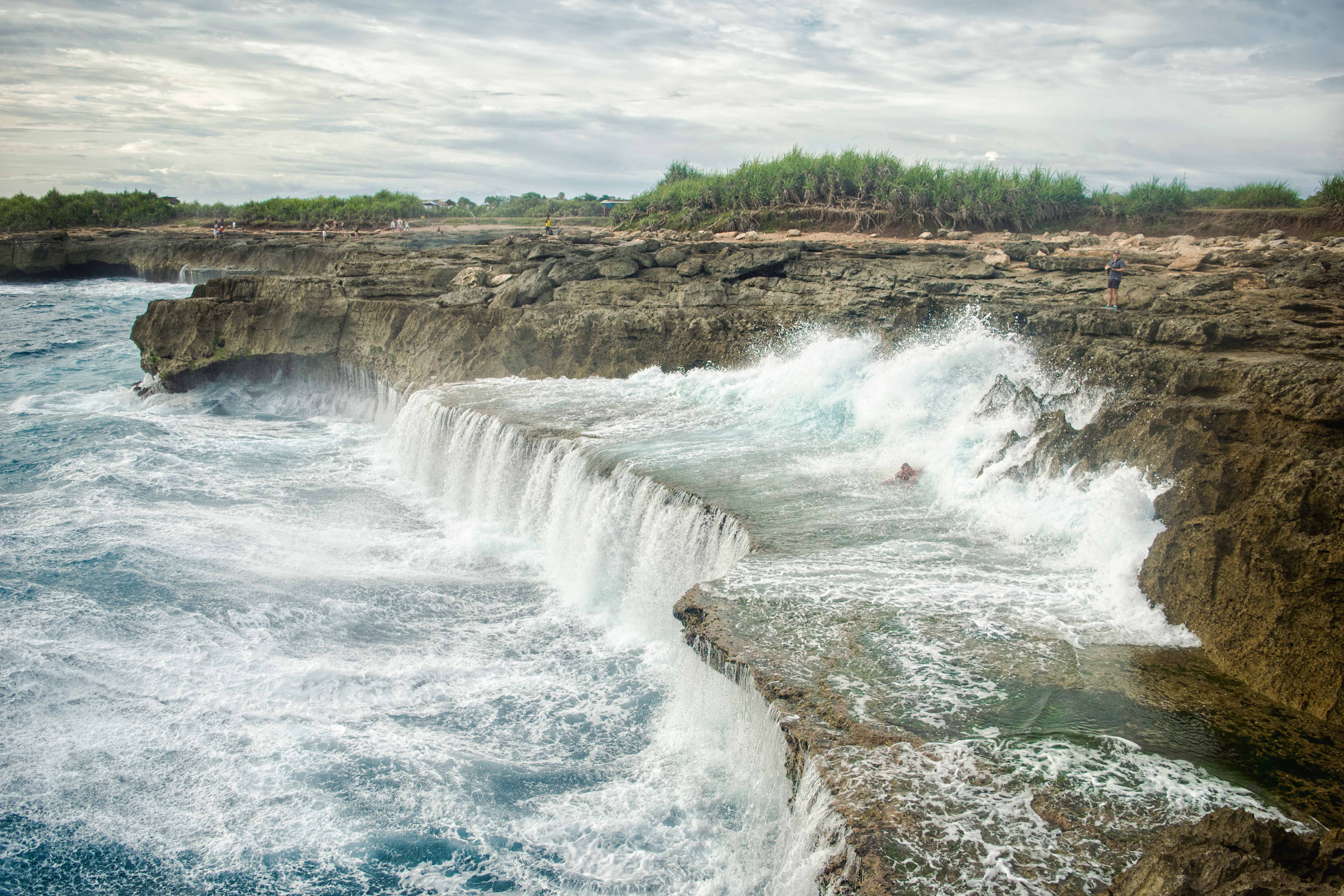 Devil’s tear is the major attraction of these two islands. Drive back to Lembongan to see the crazy waves of Devil’s tear where the mother nature unleashes ferocious waves that hit the rock side and sprays it all over. Be very careful while standing there. One small slip and it could be very fatal.