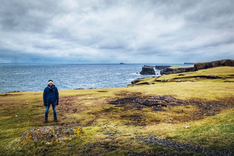 At this point, the fact of being a solo traveller doesn’t surprise me anymore. I’ve learned much about Shetland within a day. No wonder it is regarded as one of the most unspoiled destinations around the world. The lighthouse is closed for the season. Darkening clouds gift a slight drizzle only to be pushed away by a gust of wind. Like minuscule dust on a giant rock, I stand in the vastness of Eshaness, awed by her strength and beauty.