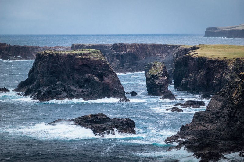 Within minutes of leaving the town center I realise that, whichever direction you go, there won’t be any human soul anywhere near you. Throughout the journey to Eshaness, David gives me an account of life in Shetland — the oil industry, mussels farming, waste management, fisheries and much more. Though an Englishman, he has lived for most of his life here in the archipelago. Passing ‘Mavis Grind’, the narrow strip of land where the Atlantic Ocean nearly cuts through to the North Sea, we reach our destination.