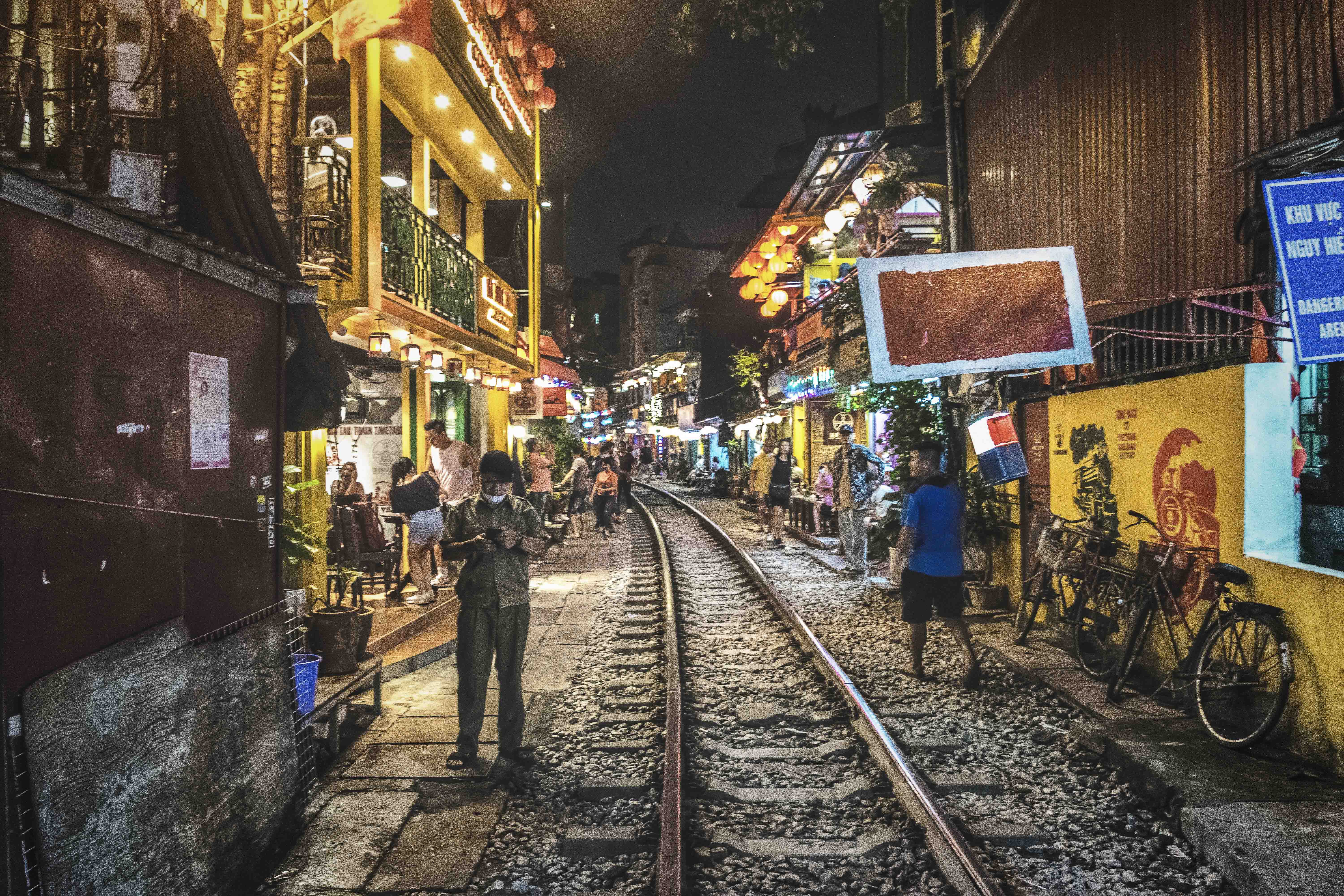 The best time to capture the iconic view of trains in Vietnam is late in the evenings. To fully experience this, you can’t miss visiting one of the charming cafes that line both sides of the railway tracks. With so many tourists flocking to snap a picture, it’s no surprise that these cafes thrive. Grab a spot in front of the cafe, order a refreshing Saigon beer or a delicious egg coffee, and settle in to watch the train go by. Just be prepared for the possibility of a long wait, as trains don’t always stick to their schedules. We ended up waiting nearly 2 hours before the train finally arrived.