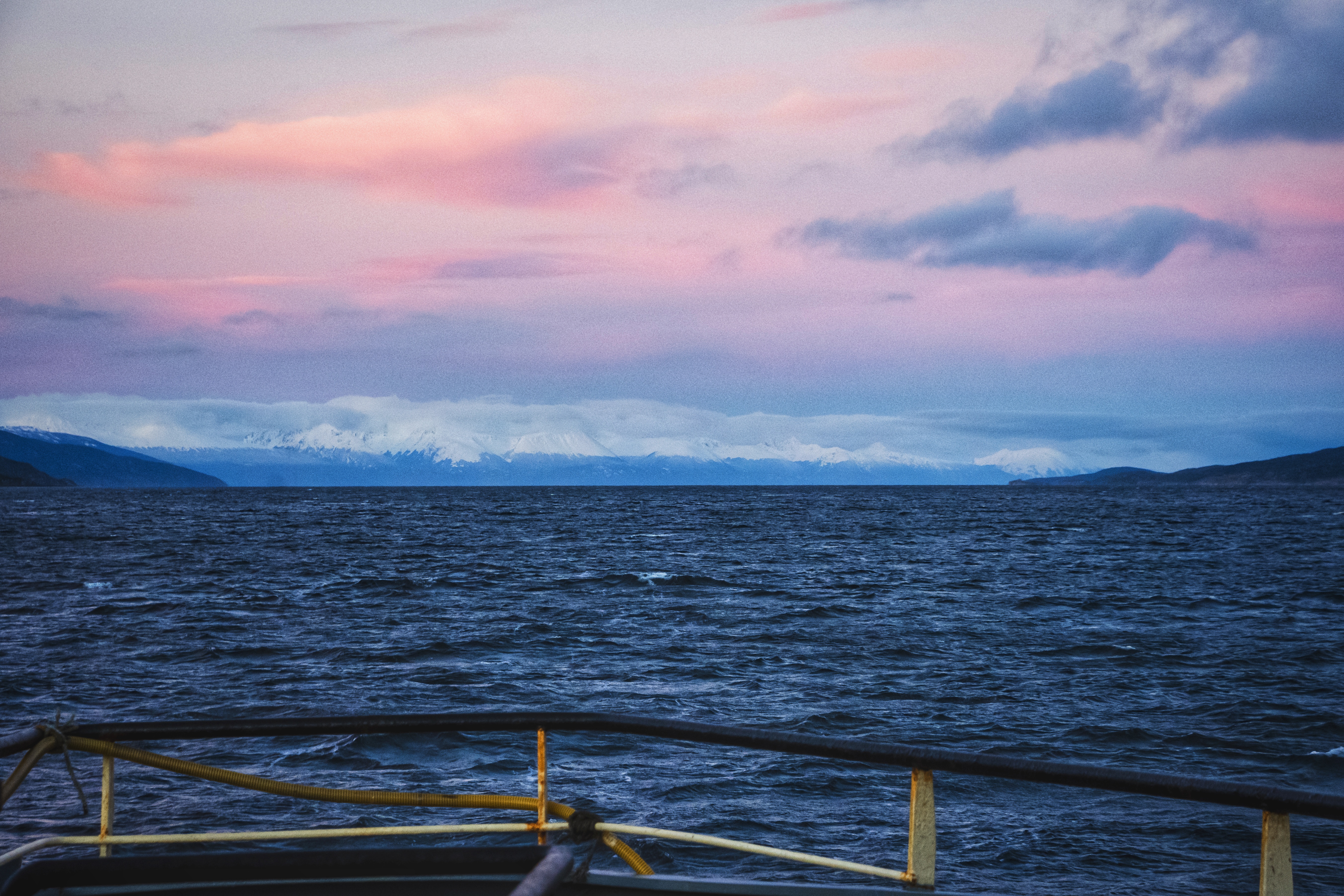 As the ferry enters the Beagle Channel, the horizon shifts. Against the backdrop of a dusky, pink-painted sky, I see the snow-capped massif of Argentina. Could there be a more beautiful sunset than this? In the past month of my travels across South America, I can’t recall anything quite like it.