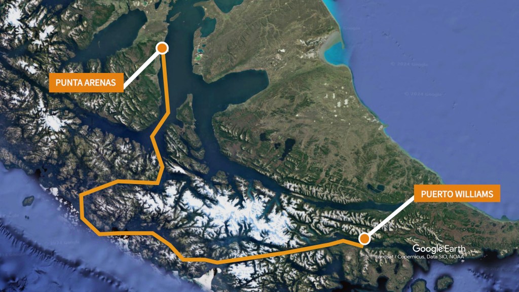 The call for dinner comes sooner than I expected. Honestly, I have no idea what the food situation is on board. Standing in the cafeteria, trying to figure it out, a fellow passenger notices my confusion. “It’s all included in the ticket,” he says, reassuring me. Relieved, I join the line of passengers, all patiently waiting with plates in hand to scoop up spaghetti and meatballs—tonight’s meal. I find a seat at the far end of the room, near a classic round porthole. Through it, I gaze out at the Strait of Magellan, the same waters navigated centuries ago by Captain Magellan on his voyage from the Atlantic to the Pacific, seeking a path to circle the globe. Outside, the daylight is fading fast, the horizon slowly swallowed by darkness. There’s little for me to do tonight but sleep through it.